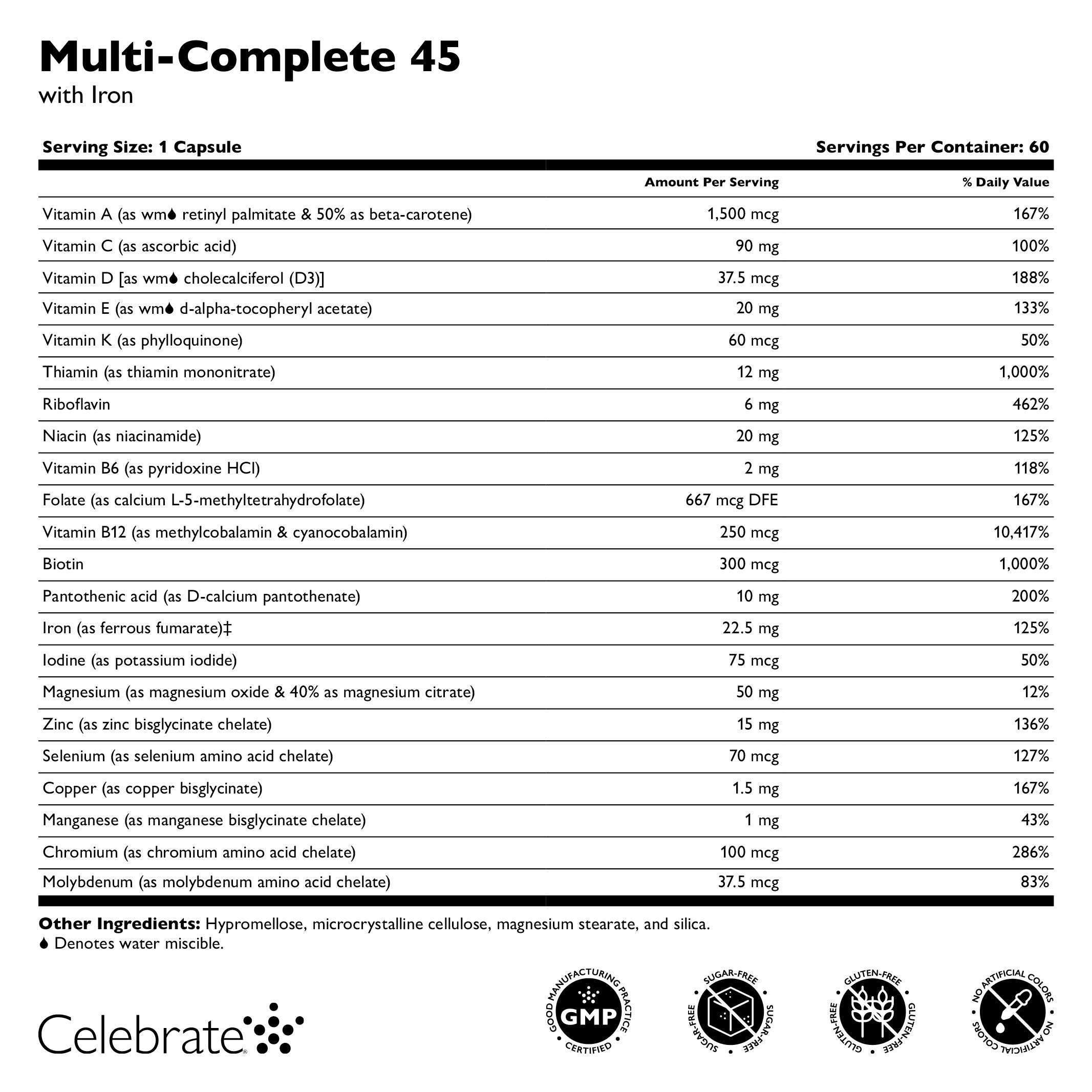 Multivitamínico bariátrico Multi-Complete 45 con Hierro, Cápsulas